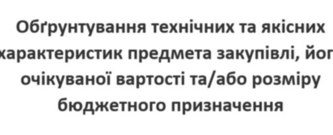 Обґрунтування технічних та якісних характеристик предмета закупівлі:
