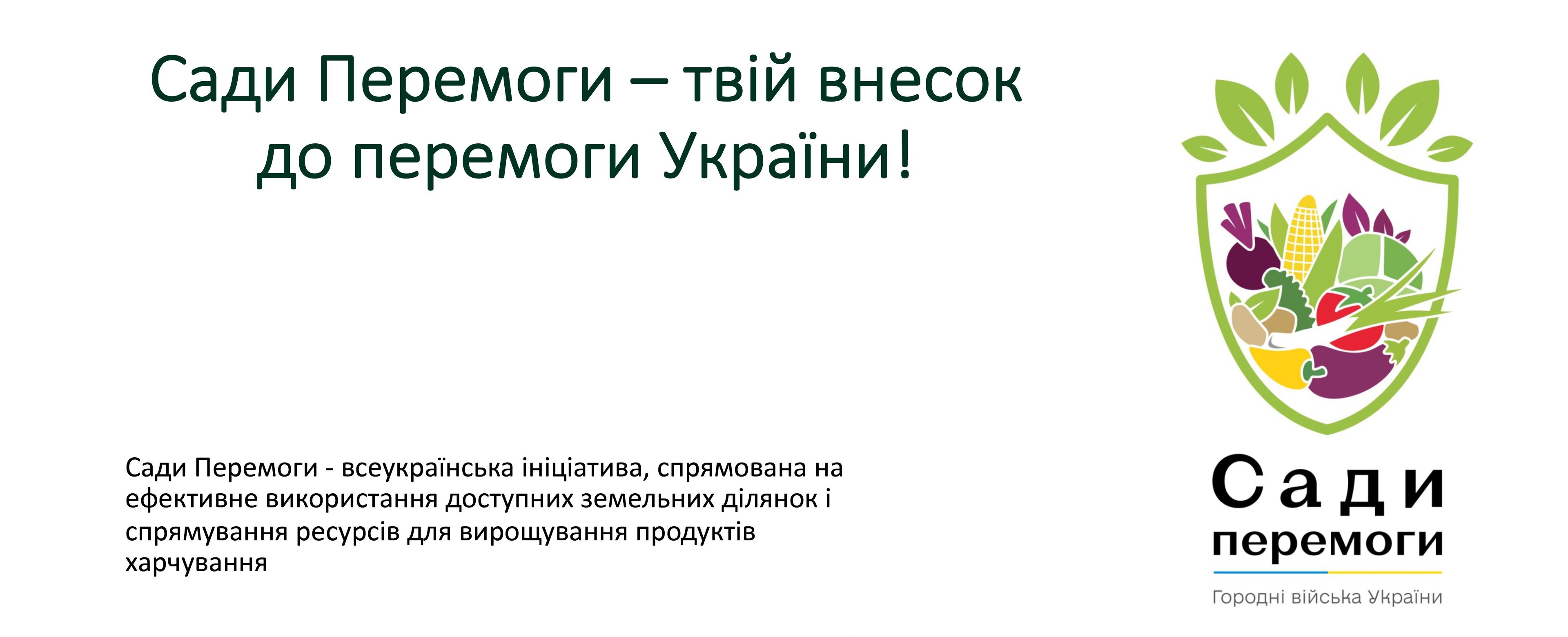 територіальна громада, яка має комунальні землі – мають включитись у програму самозабезпечення харчовими продуктами, обробити, засіяти/засадити свої земельні ділянки – створити свої Сади Перемоги.
