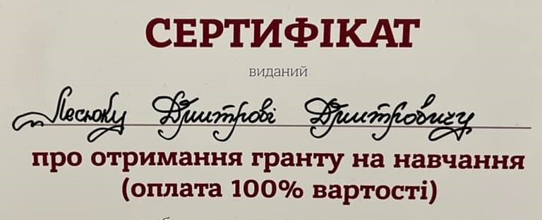 Вітання з отриманням гранту на навчання в Університеті Короля Данила