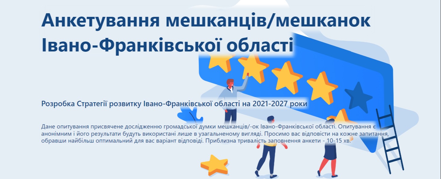 Запрошення для мешканців та представників бізнесу взяти участь в опитуванні, яке допоможе визначити найважливіші напрями розвитку Івано-Франківської області. Опитування необхідно пройти до 26 листопада 2024 року.