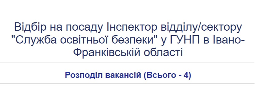 Відбір на посаду Інспектор відділу/сектору "Служба освітньої безпеки" у ГУНП в Івано-Франківській області