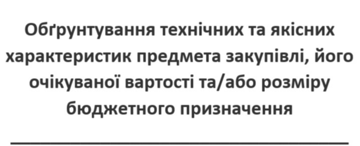 На виконання постанови КМУ від 11 жовтня 2016 р. № 710 "Про ефективне використання державних коштів" оприлюднюється обґрунтування технічних та якісних характеристик предмета закупівлі, його очікуваної вартості та/або розміру бюджетного призначення